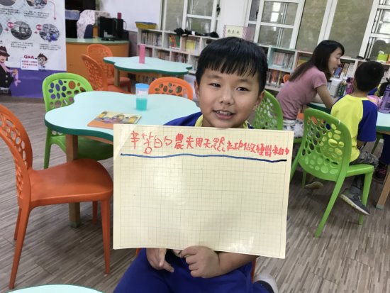 目前課程尚未結束,但這幾個禮拜中我看見了孩子的改變,我看見孩子願意自動在下課時間,到菜園裡照顧即將義賣的蔬果,為它們撒上肥料、澆水、除蟲和鋤草;我也看見了大朋友帶著小朋友,一同為了最終任務腦力激盪,孩子在互動的過程中,因為想讓最終任務更加圓滿,彼此相互學習、成長。