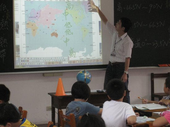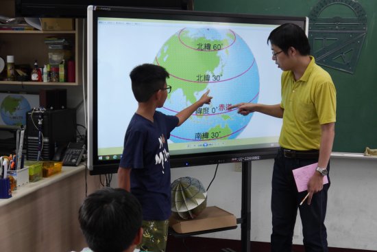 2.教學這個章節之後,教學者認為,對於剛升上五年級的小朋友而言,經度、緯度這種離他們生活經驗較遠的抽象概念,的確不好理解。所以,如果可以運用實體教具、虛擬電子白板以及觸控電視,是可以協助小朋友理解這類的地球科學知識。