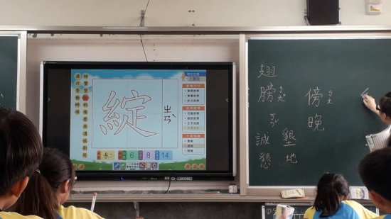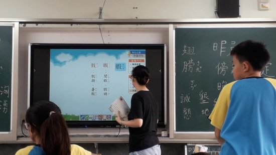 生字教學:筆順教學可抽學生上台配合教室內的大型顯示器觸控螢幕寫生字,其他學生空中寫字。字音字形和成語教學請學生發表預習內容補充多音字、形近字、成語、近/反義詞、典源等。